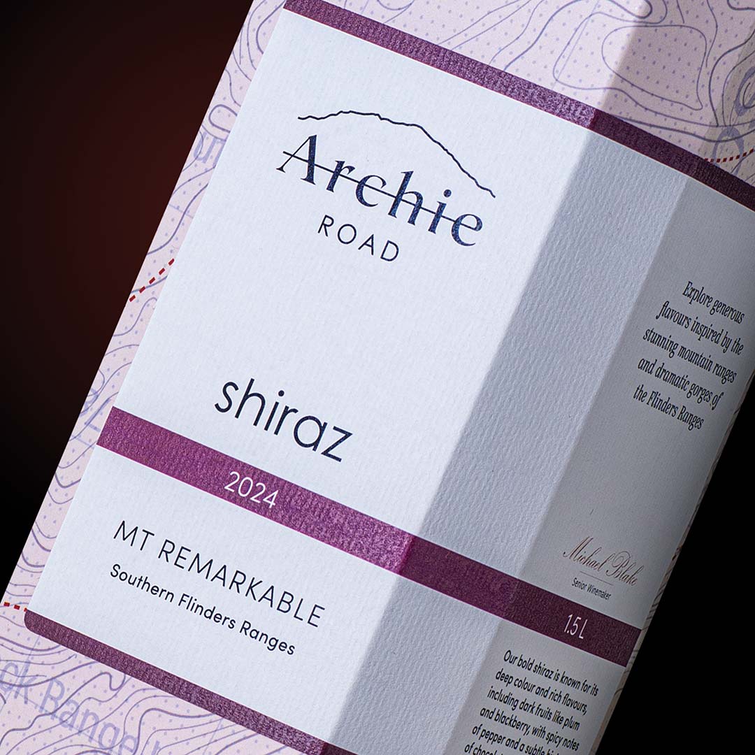 The solution was to create a box with an angled side section removed and wraparound labels that evoke the familiarity of a wine bottle. The curvy line brand identity was based on the unique profile of Mount Remarkable when seen from Archie Road.